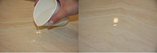 放置约30分钟后水圈保持原来的大小,并未被瓷砖吸收