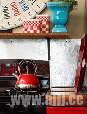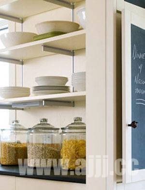厨柜里、搁架上收纳最多的就是各种餐具了,而选择一些色彩艳丽的餐具等小物品,既是满足了正常的生活需求,也能改变厨房的色调和装饰氛围。