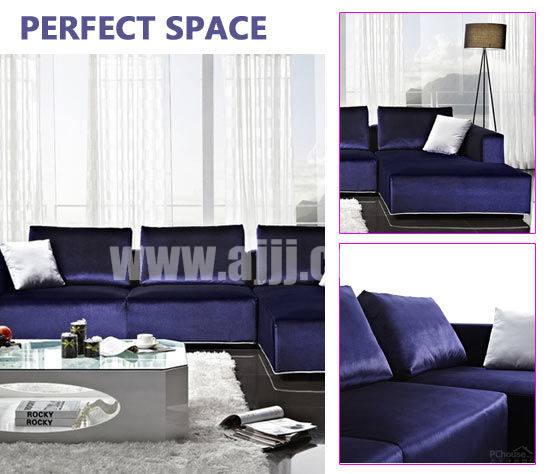 蓝紫色的布艺沙发,优雅高贵,无疑使简约客厅里最大的彩色凝聚点。有了沙发区的深厚颜色,抱枕和地毯就可以选择简洁的白色系了。