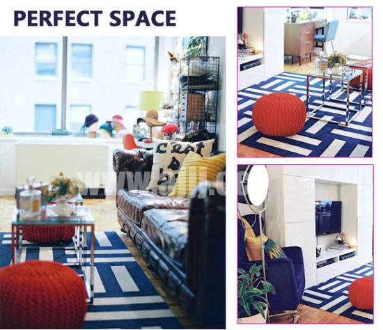 深巧克力色的真皮沙发带来的浓郁传统风格,在蓝白色地毯的搭配下,营造出清新的怀旧风,同时让客厅有着都市现代风的痕迹。鲜黄色的抱枕和沙发搭在一起,让沙发更加清纯小清新,和客厅的装修更好地融合在一起。