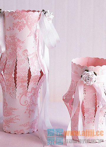 精细的做工使其外面看上去很惊艳,插花能作花瓶,插笔能作笔筒,独特的造型给婚房增添不少创新的元素,白色的丝带编制的花朵更是画龙点睛制作。