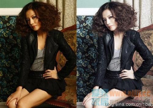 从图看,左边的图能清晰的看见范冰冰的颈纹,而右图就被PS过很是完美。