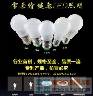 会上,雪莱特隆重推出了代表行业先进水平的“健康LED照明”光源产品,分别是超薄设计的LED筒灯、嵌灯;超强省电、超长寿命的LEDT8日光灯;专为水晶灯设计、尽显璀璨夺目的LED蜡烛灯;以及掀起市场巨大反响的专利产品——3W、3。8W、5W、6W、9W“小越亮”LED球泡灯。