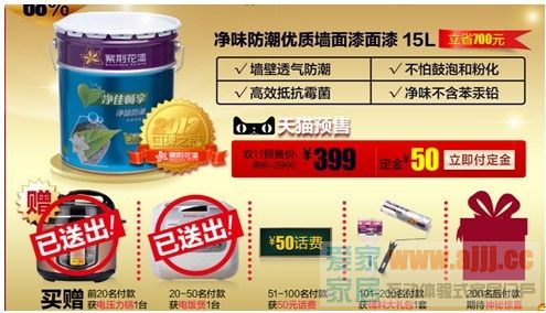 此次双十一活动是紫荆花漆天猫旗舰店上线以来的最大优惠活动,机会不容错过,为家装网友倾情奉献,并有更多惊喜汇聚双十一。