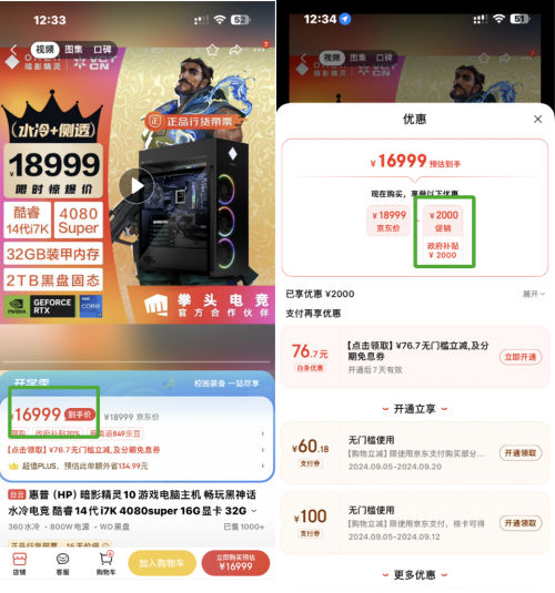 9月5日,浙江家电以旧换新补贴活动正式上线,浙江省政府对家电、电脑八大品类发放补贴,其中电脑品类包括笔记本、游戏本、台式机、一体机等符合一级、二级能效的产品。浙江消费者来京东领取资格后选择以旧换新或直接购新均可享补贴,一级能耗产品可享20%补贴,二级能耗产品可享15%补贴,每位用户每类产品仅可享受1件商品补贴,每类商品至高补贴2000元。下面就来看看具体的领取及使用流程吧。